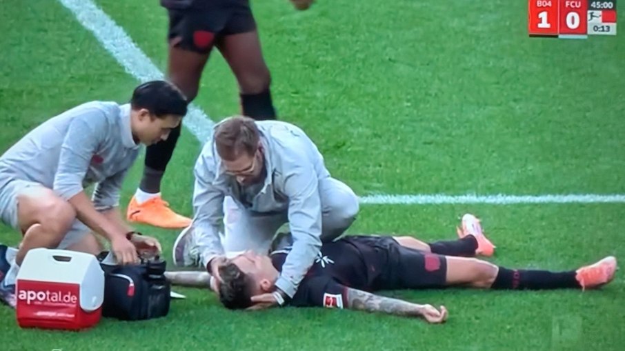 O lateral-esquerdo Alejandro Grimaldo assustou torcedores do Bayer Leverkusen neste sábado (04) ao deixar o gramado de maca após uma forte pancada na cabeça durante a partida contra o Union Berlin, válida pela sexta rodada da Bundesliga.