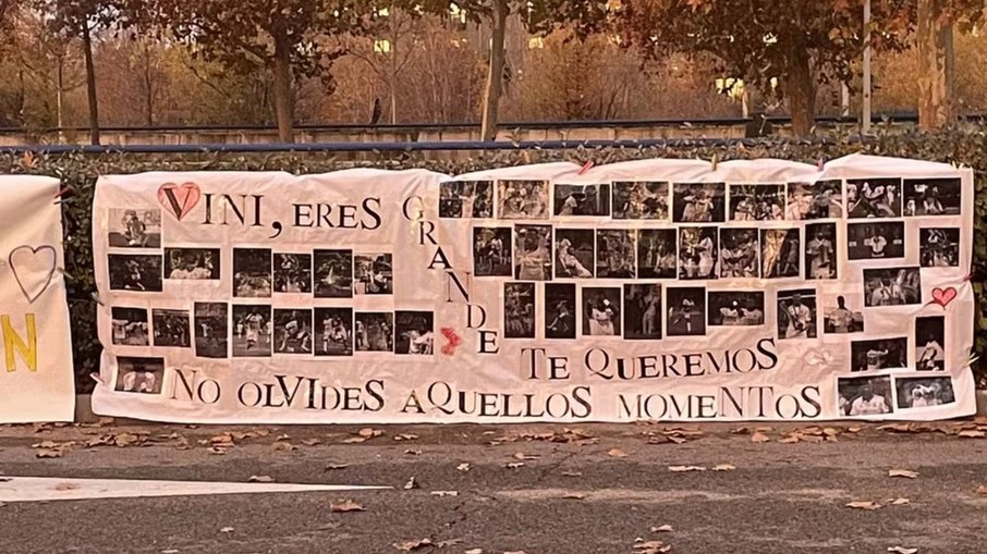 por conta dos recentes resultados negativos em campo, os torcedores merengues prestaram apoio aos pressionados Vini Jr.